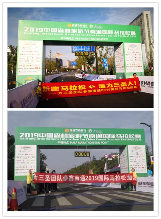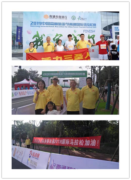 2019中國(guó)森林旅游節(jié)南通國(guó)際馬拉松在南通體育會(huì)展中心南大門(mén)正式開(kāi)跑!南通瞬間成為全世界最熱鬧的城市之一!此次國(guó)際馬拉松賽是南通首次舉辦國(guó)際馬拉松賽,也是南通有史以來(lái)舉辦的規(guī)模最大、人員最多的體育賽事。上萬(wàn)運(yùn)動(dòng)愛(ài)好者集結(jié)于此,一場(chǎng)展現(xiàn)毅力與勇氣的戰(zhàn)斗開(kāi)啟.南通三圣企業(yè)集團(tuán)組織參賽人員與來(lái)自全國(guó)各地和肯尼亞、德國(guó)、英國(guó)等20多個(gè)國(guó)家和地區(qū)近15000名選手同場(chǎng)競(jìng)技,用奔跑共同迎接即將到來(lái)的2020年.激情洋溢的三圣跑團(tuán)、以及熱情奔放的三圣拉拉隊(duì)成為賽場(chǎng)上一道亮麗的風(fēng)景線。