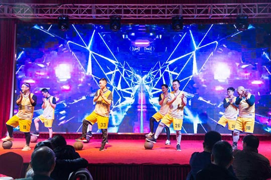 本次年會由公司內(nèi)部三個部門聯(lián)合承辦,所有節(jié)目均由承辦部門自編、自導(dǎo)、自演,充分展現(xiàn)了三圣人多才多藝的綜合素質(zhì)和自信向上的精神面貌。帥氣十足的佳佳和優(yōu)雅靚麗的雙雙,這一對主持搭檔帶給大家耳目一新的開場。隨后上演的一段兵乓球熒光舞,科技感十足的服裝、絢麗的七彩光,配上搞笑夸張的肢體動作,子公司艾伯納三圣的節(jié)目征服了在場觀眾。接下來的“灌籃高手”全明星秀,三圣籃球社團(tuán)的部分成員們,在葛教練的指揮下,展現(xiàn)了酷炫嫻熟的運球技藝和團(tuán)結(jié)默契的球隊配合。