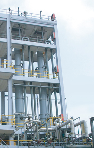 Cl2、H2合成、吸收、冷卻,副產(chǎn)尾氣再處理四個工藝程序合并在一臺設(shè)備內(nèi)完成。